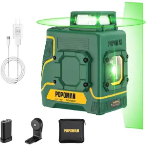 Nivel láser verde POPOMAN MTM330B, 1×360° línea láser 30m, Carga USB y Batería de litio, 5 Líneas y 360° Giro, Autonivelante
